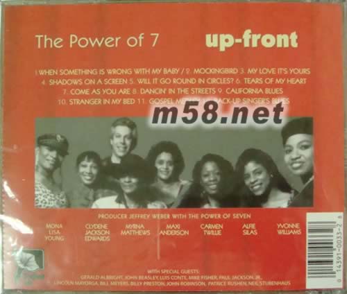 七仙女 THE POWER OF 7 Up-Front(m58.net) 七仙女 由音響名人監制.音樂為重.肯定是一張好叫座之作.是一個七人的黑人合唱團,唱功成不凡,熱力十足,充滿騷靈味道,是典型美國口味的節奏與怨類音樂.