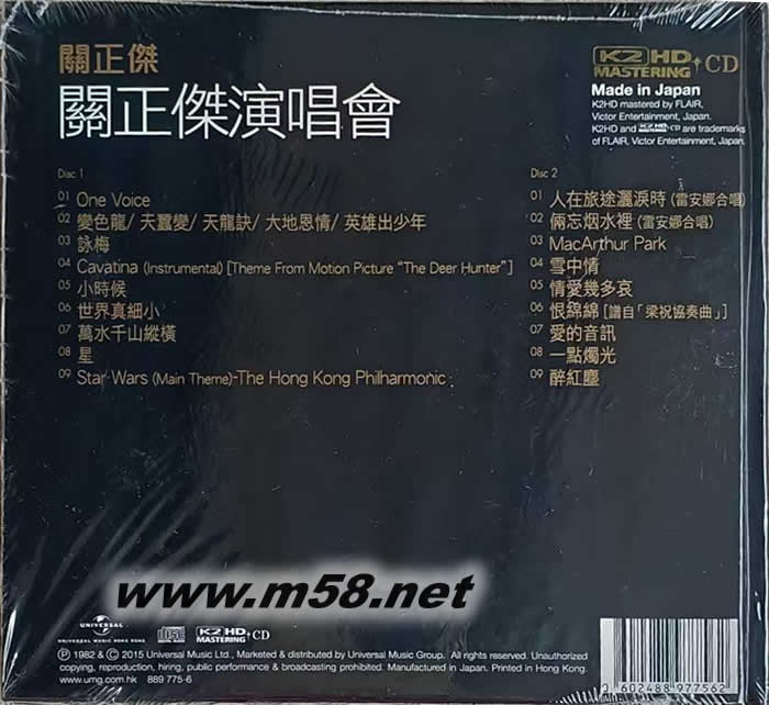 關(guān)正杰演唱會(huì) (環(huán)球K2HD黑色封面)專輯背面圖片