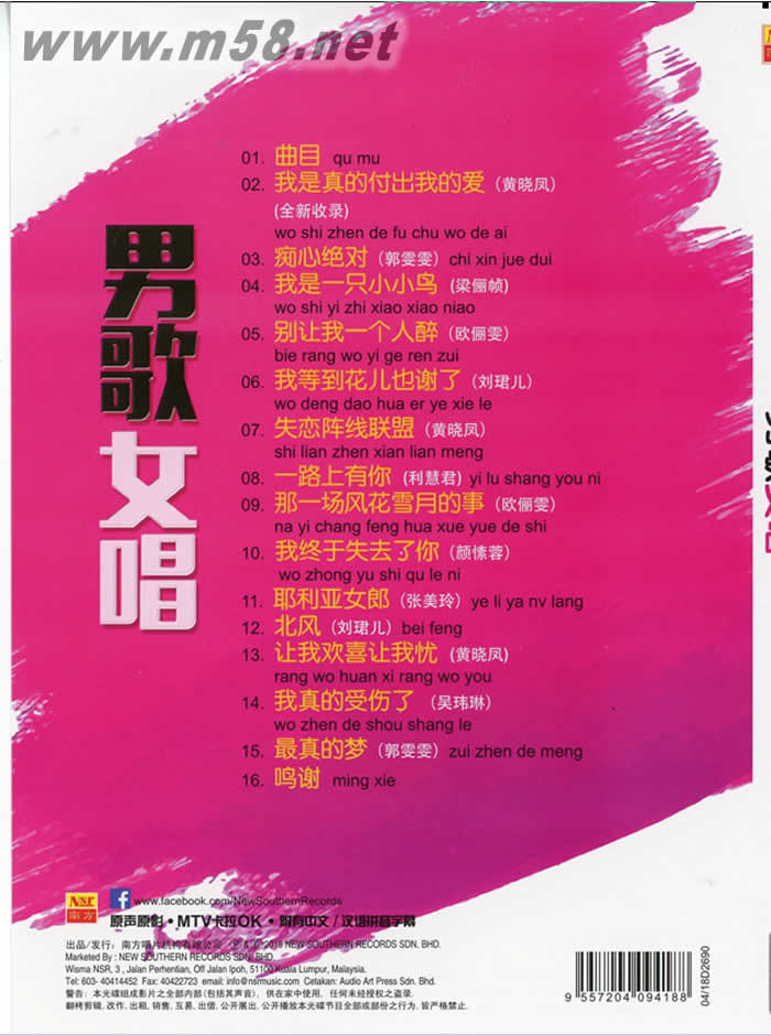 產(chǎn)品名稱:  男女對唱 DVD+CD   [DVD+CD]