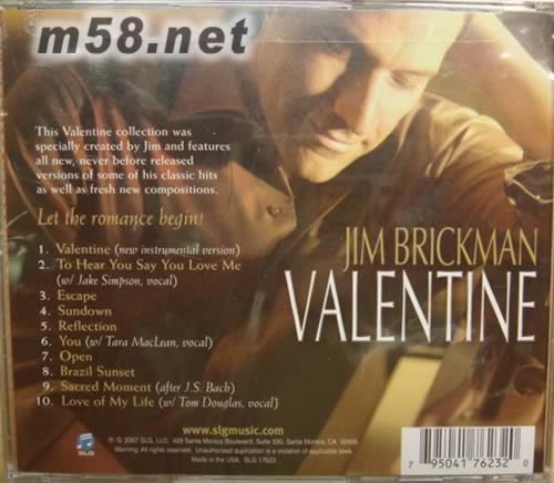 情人心曲VALENTINE(m58.net) 美國鋼琴名家 Jim brickman 情人節(jié)特備專輯 演繹多首深情作品 唯美的鋼琴旋律中 一聽鐘情 深情的歌聲 動人的情懷暖人心窩 原裝美國版頂級錄制 音色通透靚絕