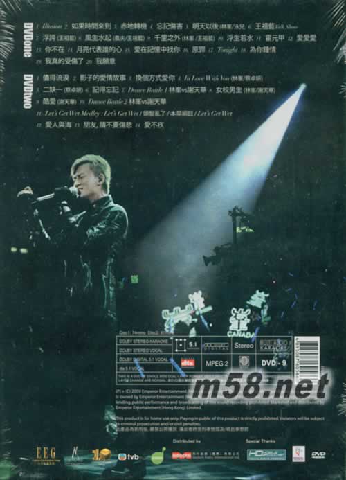 情無限演唱會 LET‘S GET WET 卡拉OK DVD(m58.net) 林峰首個個人演唱會 2KARAOKE DVD 收錄36首演唱會歌曲 表演嘉賓 蔡卓妍/泳兒/王祖蘭/農夫/謝天華