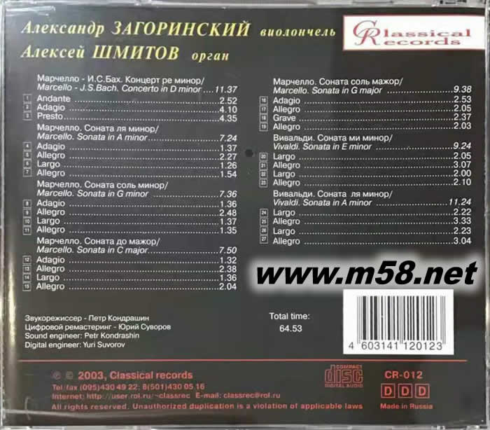 大提琴與管風琴 Marcello/ Vivaldi: Works for Organ and Cello(m58.net)