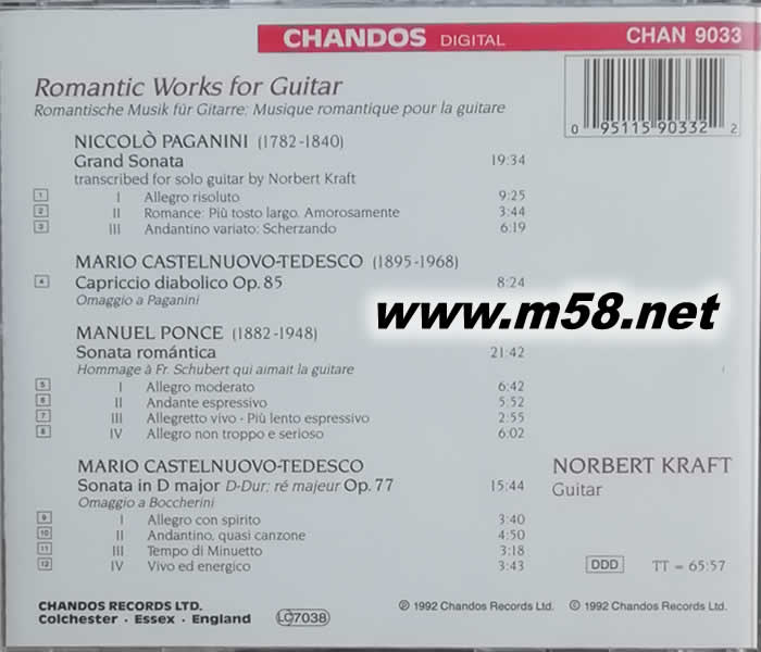 浪漫吉他作品/克拉夫特吉他 NORBERT KRAFT ROMANTIC WORKS FOR GUITAR專輯背面圖片