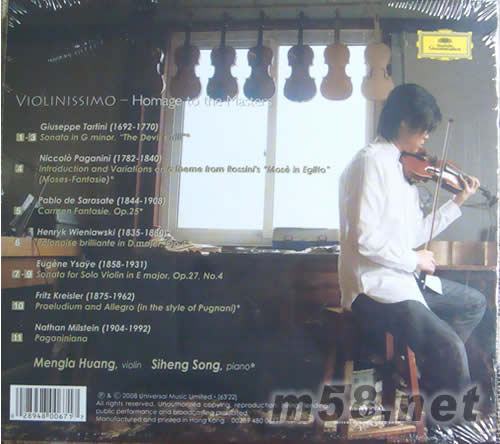 非常小提琴(m58.net) 小提琴家的最高榮譽 帕格尼尼大賽金獎得主 黃蒙拉<<非常小的提琴>> 向歷代大師致敬 3 Tartin[魔鬼的顫音] 5 Saradate[卡門幻想曲] 10 Kreisler[前奏與快板] 格林美得獎錄音師陸曉幸泡制
