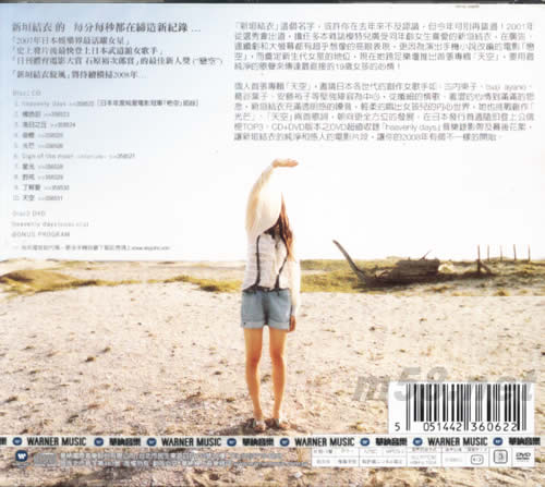 個人首張專輯「天空」,邀請日本各世代的創作女歌手如:古內東子、tsuji ayano、葛谷葉子、安藤裕子等堅強陣容,從纖細的情歌、羞澀的心情到滿滿的思念,新垣結衣充滿透明感的嗓音,輕柔的唱出女孩兒的內心世界,她也挑戰創作「光芒」、「天空」兩首歌詞,朝向更全方位的發展。在日本發行首週隨即登上公信榜TOP3。CD+DVD版本之DVD超值收錄「heavenly days」音樂錄影帶及幕后花絮,讓新垣結衣的純凈和感人的電影片段,讓你的2008年有個不一樣的開始。