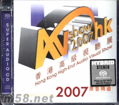 香港高級視聽展2007原音精選SACD(m58.net) 附送大會精心選輯靚聲雙層SACD《2007原音精選》一只,SACD或CD機皆可播放,內里精選來自不同國家、廣為音響發燒友鐘愛的美妙音樂,目的旨在讓普羅大眾有機會接觸不同音樂文化及享受迫真的錄音效果
