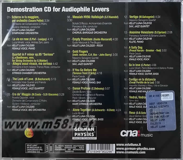 德國品牌殿堂German Physiks DEMOSTRATION CD for Audiophile Lovers 示范測試專集 限量版(發燒音響推介)(m58.net)
