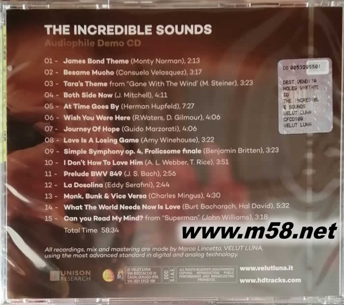 如月示范天碟:意大利著名音響優力聲Unison Research測試典范CD -難以置信的聲音THE INCREDIBLE SOUNDS Audiophile Demo CD(m58.net)