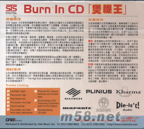1.Low/high organ 2.Percussian high 3.Percussian low 4.Percussian very high 5.piano low/high 6.Percussian very fast from small instruments 7.Flute picollo bassax tenorsax and double bass 8.Sound library STS Television production(part of STS Digital) 9.demagnetising CD track