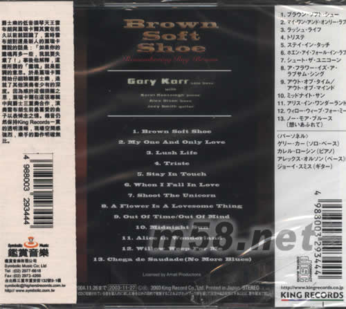 1.BEOWN SOFT SHOE 2.MY ONE AND ONLY LOVE 3.LUSH LIFE 4.TRISTE 5.STAY IN TOUCH 6.WHEN I FALL IN LOVE 7.SHOOT THE UNICORN 8.A FLOWER IS A LOVESOME THEING 9.OUT OF TIME/OUT OF MIND 10.MIDANIGHT SUN 11.ALICE IN WONDERLAND 12.WILLOW WEEP FOR ME 13.CHEGA DE SAUDADE(NO MORE BLUES)