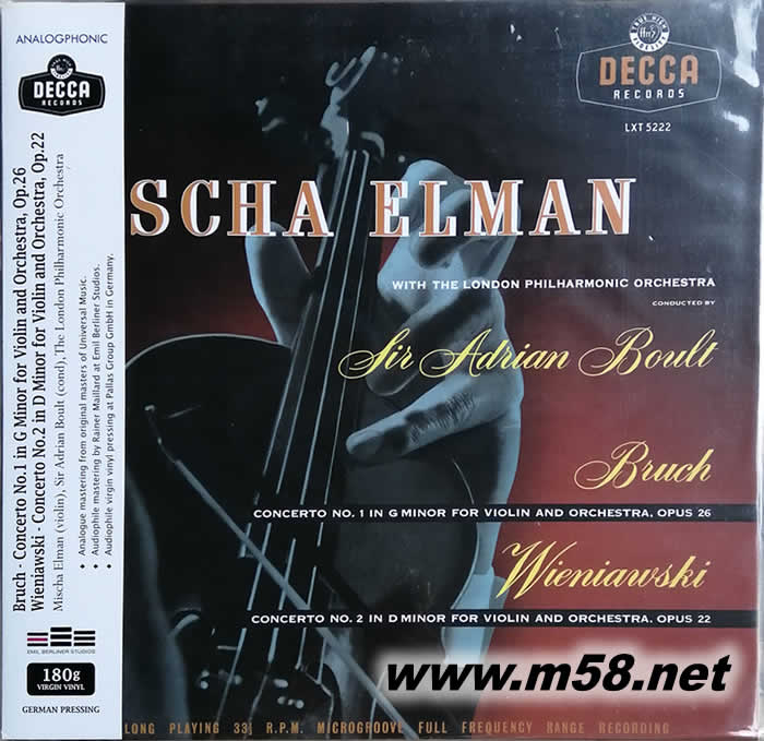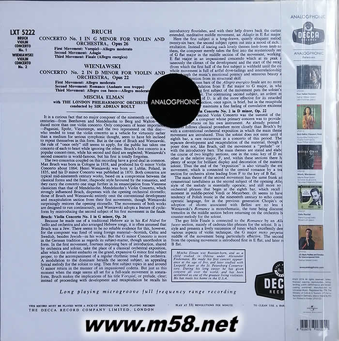 布魯赫、維內(nèi)亞夫斯基小提琴協(xié)奏曲 BRUCH WIENIAUSKI 黑膠(m58.net)