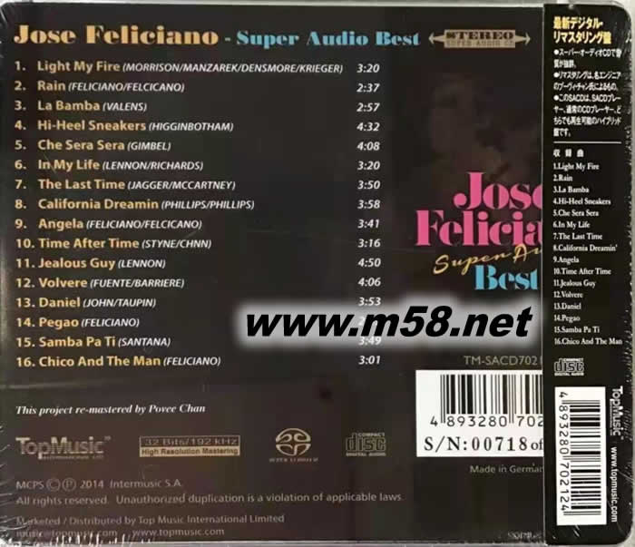 與巴布狄倫及瓊拜雅同時發跡的他,獲得 RCA 公司注意而成為旗下簽約藝人,並以拉丁風格重新詮釋門戶合唱團的〈Light My Fire〉在各國排行榜創下驚人佳績。1970 年,再度以《圣誕快樂》專輯創下銷售巔峰,同名單曲不但翻唱無數,更成為美國每年圣誕必播歌曲。本精選集收錄他當年的成名演奏以及翻唱歌曲,融合拉丁的熱情以及輕音樂的浪漫,展現出不拘一格的音樂才華,透過 Top Music 的母帶重製,音質發燒,更具魅力。