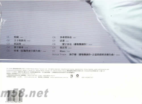01. 收藏 02. 王子的新衣 03. 原諒我 04. 奮不顧身 05. 疼愛 06. 多希望妳在 07. 活著 08. 一輩子存在 09. 我在哭 10. Blues Bonus Track. 海芋戀