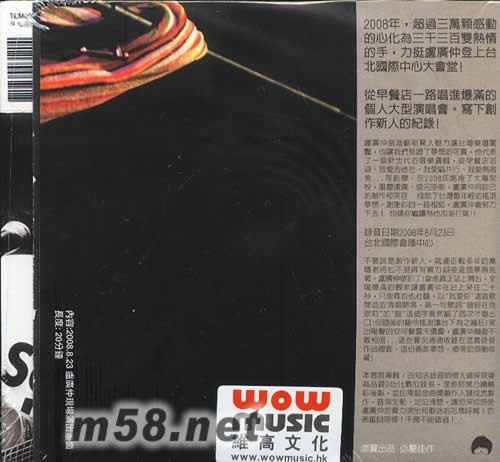 Live In TICC現(xiàn)場(chǎng)錄音專輯 (2CD) (預(yù)購版)(m58.net) ★【預(yù)購贈(zèng)品】:『2008.8.23 盧廣仲現(xiàn)場(chǎng)演出畫面DVD』(長度:20分鐘)。 他有一種像是要唱歌給全世界聽的勇氣和力量。 這一份近乎憨直的力量正是這個(gè)時(shí)代所需要的,如此直指人心、讓我們?yōu)橹畡?dòng)容。 在完成了100場(chǎng)巡迴演出後,盧廣仲發(fā)行第一張個(gè)人專輯"100種生活",攻下排行冠軍。并在發(fā)片第88天舉辦了一場(chǎng)爆滿的個(gè)人大型售票演唱會(huì),寫下臺(tái)灣創(chuàng)作新人的記錄。盧廣仲創(chuàng)造了嶄新驚人魅力讓臺(tái)灣樂壇驚豔,也讓我們見證了夢(mèng)想的可貴! 錄音日期 2008年8月23日 在這套現(xiàn)場(chǎng)錄音作品中,我們可以感受到盧廣仲徜徉于各類音樂風(fēng)格中的才華,也會(huì)被那大膽跳躍同時(shí)又善良溫暖的色彩所感動(dòng)。 他代表了一個(gè)新世代的創(chuàng)作邏輯,不論是爵士、搖滾、民謠他都能盡情揮灑。他的歌詞充滿真實(shí)生活的感動(dòng),這是專屬于盧廣仲的free style! 在這套錄音中除了盧廣仲個(gè)人精彩創(chuàng)作曲目以外,特別收錄現(xiàn)場(chǎng)演唱Maroon5的sunday morning、陳綺貞1234567、英文經(jīng)典名曲Loving you...等動(dòng)人的詮釋。以及廣受樂迷稱道的全新單曲"rock&roll的style"(本曲敘述盧廣仲的早餐店搶劫實(shí)況)。精彩可期,值得您感動(dòng)收藏。