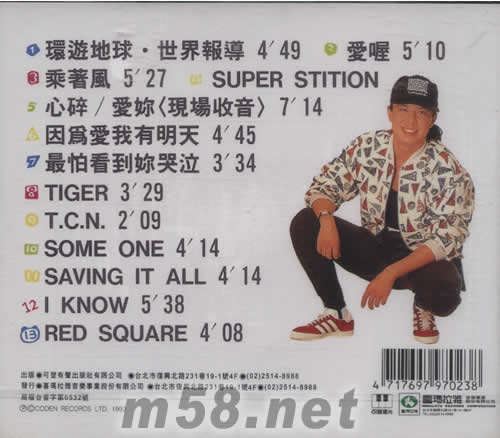 01 環游地球世界寶島 02 愛語 03 CHENG ZHU FENG 04 Super Stition 05 心碎/愛你(XIAN CHANG SHOU YIN) 06 因為你我有明天 07 最怕看到你哭泣 08 Tiger 09 T C N 10 Some One 11 Saving It All 12 I Know 13 Red Square
