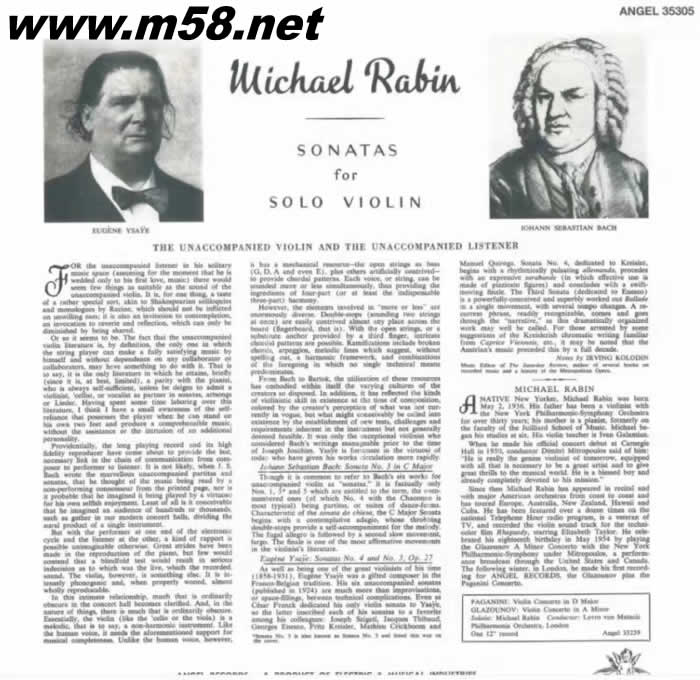 所屬歌手:   [MICHAEL RABIN] [黑膠唱片] [小提琴系列]