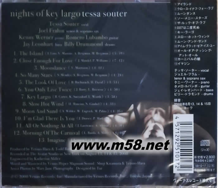 美國當紅爵士女歌手TESSA SOUTER伙拍鋼琴大師KENNY WERNER等演繹多首經濟典名曲,以極具爵士韻味的歌聲帶來了濃烈的情感,一字一句充滿著真情真意VENUS遠赴紐約AVSTAR STUDI錄制
