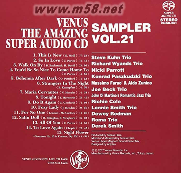 夢幻發(fā)燒試碟王 21 VENUS THE AMAZING Super Audio CD SAMPLER VOL.21 (限量單層SACD)專輯背面圖片