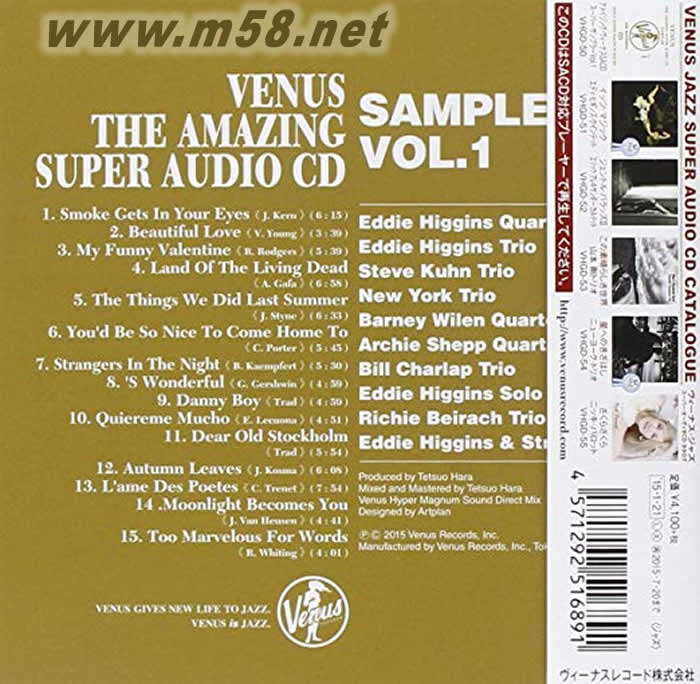 夢幻發燒試碟王 1 VENUS THE AMAZING Super Audio CD SAMPLER Vol.1 (限量日版單層SACD)專輯背面圖片