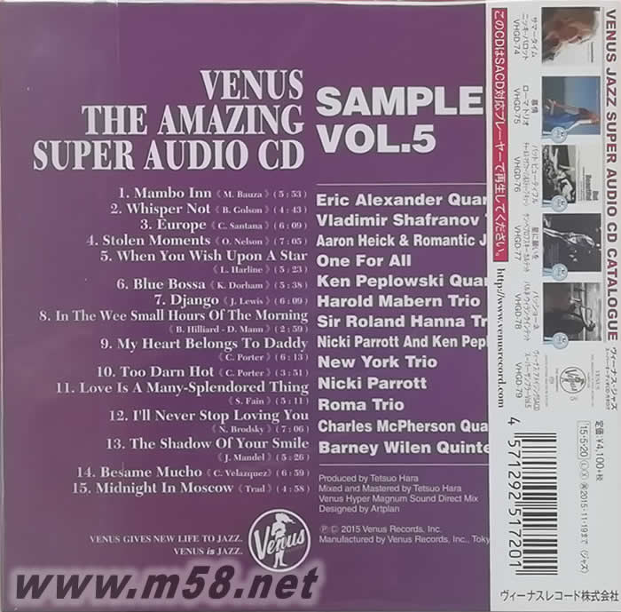 夢幻發(fā)燒試碟王 5 VENUS THE AMAZING Super Audio CD SAMPLER Vol.5 (限量日版單層SACD)(m58.net) 僅限SACD機播放