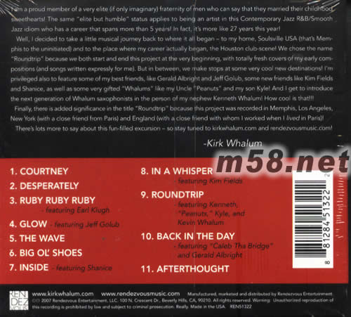 昔士風巨星kirk whalum演繹多首精彩用品,請來了eaul klugh,jeffbolub,gerald albright等巨星協奏引人入勝的爵士樂風,節奏鮮明的時尚韻味帶出感性情懷.原裝美國版.