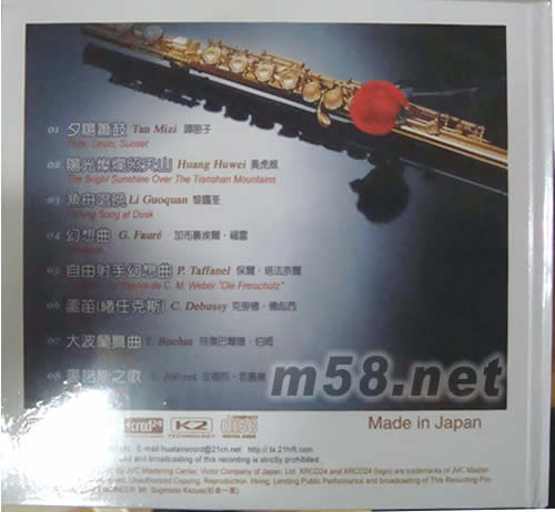 金笛XRCD(m58.net) 中國愛樂樂團首席長笛演奏家 倪一珍 以世界頂級珍藏金笛傾力奉獻 瑰麗音符盡展藝術(shù)風華 笛奏簫鼓 惟妙惟肖 意韻悠揚 絢麗曼妙 琴聲透澈 鏗鏘飽滿