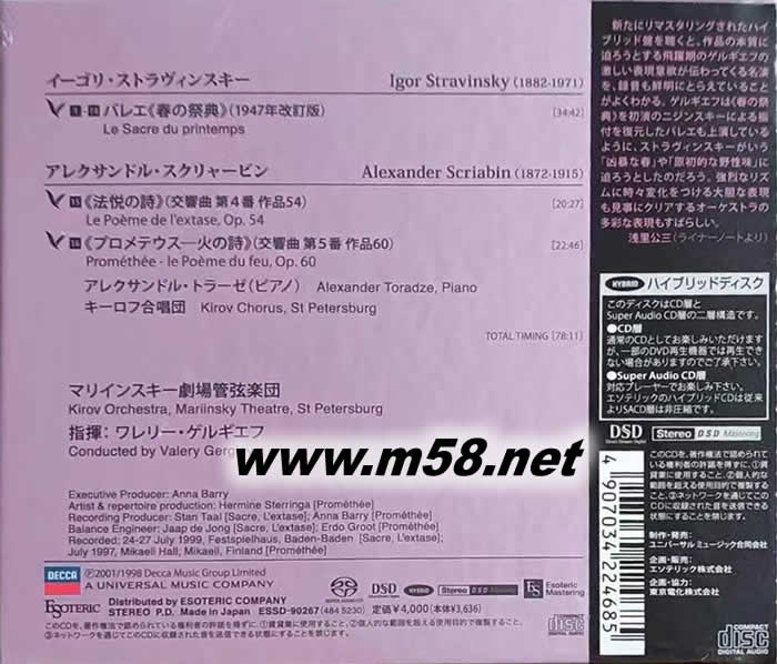 斯特拉文斯基 春之祭 捷杰耶夫指揮 THE RITE OF SPRING SACD 限量日本版(m58.net) 馬林斯基劇院管弦樂團、馬林斯基劇院、圣彼得堡 (Kirov Orchestra, Mariinsky Theatre, St Petersburg) 指揮:瓦萊里·捷杰耶夫 (Valery Gergiev)