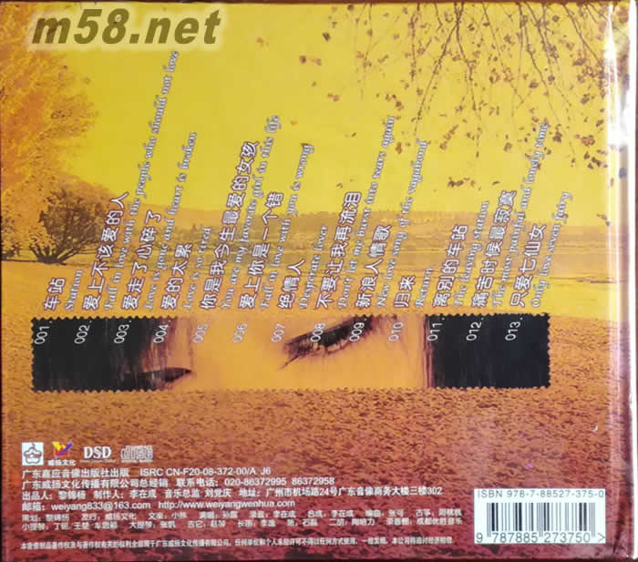 1.車站 2.愛上不該愛的人 3.愛走了心碎了 4.愛的太累 5.你是我今生最愛的女孩 6.愛上你是一個(gè)錯(cuò) 7.絕情人 8.不要讓我再流淚 9.新浪人情歌 10.歸來 11.離別的車站 12.痛苦時(shí)候最寂寞 13.只愛七仙女