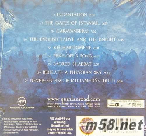 01.Incantation 02.The Gates of Istanbul 03.Caravanserai 04.The English Ladye and the Knight 05.Kecharitomene 06.Penelope's Song 07.Sacred Shabbat 08.Beneath A Phrygian Sky 09.Never-ending Road (Amhrán Duit)