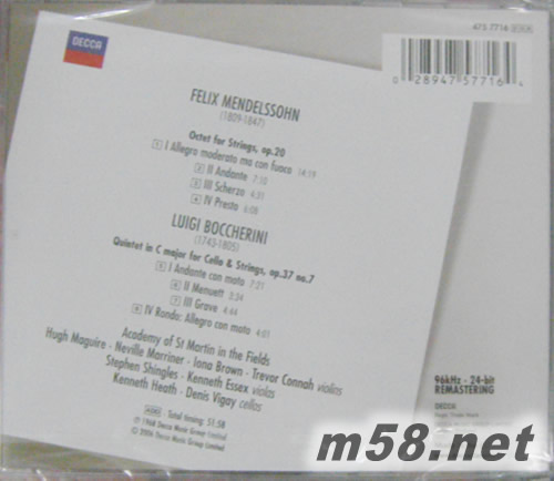 Mendelssohn孟德爾頌 Octet for Strings, op.20 弦樂八重奏,作品20 2. Octet for Strings, op.20 弦樂八重奏,作品20 3. Octet for Strings, op.20 弦樂八重奏,作品20 4. Octet for Strings, op.20 弦樂八重奏,作品20 5. Boccherini鮑凱利尼 Quintet in C major for Cello & Strings, op.37 no.7 大提琴與弦樂五重奏,作品37,第7號 6. Quintet in C major for Cello & Strings, op.37 no.7 大提琴與弦樂五重奏,作品37,第7號 7. Quintet in C major for Cello & Strings, op.37 no.7 大提琴與弦樂五重奏,作品37,第7號 8. Quintet in C major for Cello & Strings, op.37 no.7 大提琴與弦樂五重奏,作品37,第7號