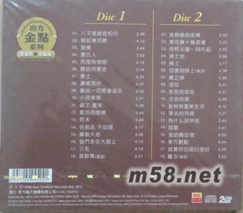 Disc 1 01. 八千里路云和月 02. 唱給黃河聽 03. 旅情 04. 蒙古人 05. 西部恍惚惚 06. 聽說你要走 07. 夢土 08. 邊城酒店 09. 雖說一切將會過去 10. 小河摸魚 11. 錯了,重來 12. 藍色的故鄉 13. 昨天 14. 往前走,不回頭 15. 蒼狼大地 16. 我們走在大路上 17. 三毛 18. 黑駿馬(蒙語) Disc 2 01. 我熱戀的故鄉 02. 黃河幾十幾道灣 03. 你和太陽一同升起 04. 黃土地 05. 熱土 06. 回家的路上(蒙語) 07. 鷹之戀 08. 埋怨 09. 苦苦的思念 10. 古老的歌 11. 我悄悄重新生活 12. 東去的列車 13. 有什么話快說 14. 酒歌 15. 我的興安嶺 16. 東方駱駝 17. 其實你也明白我好 18. 離去(蒙語)