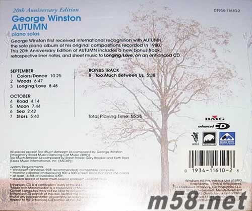 AUTUMN 20周年紀(jì)念版 秋天鋼琴獨奏 美版專輯背面圖片