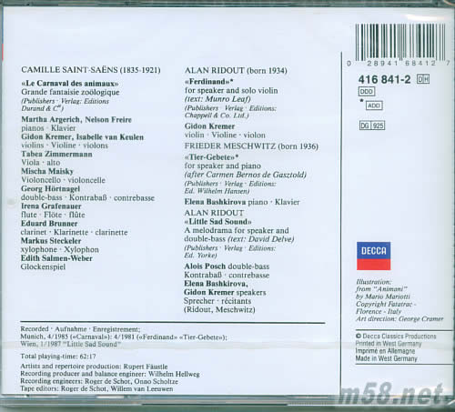 圣桑 動物狂歡節Carnaval Des Animaux Saint-Saens Chamber Works專輯背面圖片