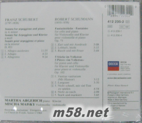 舒伯特:吉他形大提琴奏鳴曲;舒曼:OP.73幻想曲;民謠小品/大提琴家米沙·麥斯基,鋼琴家阿格里奇