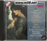 Kyung Wha Chung & Radu Lupu - Franck: Sonata For Violin And Piano鄭京和 & 拉杜·魯普 - 弗朗克:小提琴奏鳴曲(m58.net) Decca公司這款著名的室內樂唱片是由小提琴家鄭京和 (Kyung Wha Chung)與鋼琴家拉杜?魯普(Radu Lupu)合作灌錄的。 弗朗克的《A大調小提琴奏鳴曲》集中體現了他的創作特征:旋律氣質不凡,表現力深刻,和聲新穎,結構堅實協調。弗朗克于1886年完成這首《A大調小提琴奏鳴曲》,時年63歲,正處于創作的巔峰期。就像他其他作品一樣,這首奏鳴曲是循環式的,四個樂章的主題素材都源自單一的原始動機。第一章的開場小節引出這個動機,小提琴安詳地以琶音主奏主題,將鋼琴微妙的四小節冥想具體化。主題以詩歌般的長度來鋪陳,先是被抑制,然后抒情性逐漸加強。熱情的第二樂章與這種幻想的曲風形成強烈對比,十分激烈,雖然其中也有一些田園詩般慵懶的樂段。 鄭京和是韓國當代女小提琴大師,她9歲在漢城交響樂隊合作下演奏門德爾松的小提琴協奏曲,19歲獲美國勃文垂特國際比賽一等獎。1967年獲利文特里特國際小提琴競賽一等獎。1968年與紐約曼樂管弦樂團合作在紐約首次演出獲很大成功,后多次與歐美亞著名管弦樂團合作演出。1970年與普列文指揮的倫敦交響樂團合作演出柴可夫斯基小提琴協奏曲,大為轟動,從此確立了這位極富自發性的女小提琴家在20世紀后期國際樂壇的地位。其演奏有精確的節奏感和透明清純的音質,感情非常豐富,美妙的抒情味能滲入作品的深處。 羅馬尼亞鋼琴家拉杜?魯普6歲學琴,12歲登臺演奏,他的鋼琴老師穆濟切斯庫也是李帕蒂的老師,1963年獲獎學金到莫斯科音樂學院在涅高茲班上學習。1966年獲克萊本國際比賽獎,1967年獲埃乃斯庫比賽獎,1969年又獲利茲國際比賽獎。魯普的演奏追求音的微妙與流暢,在微妙的音中追求透明的陰影感;追求強音及它所造成的鮮明的明暗效果,強調動態與幅度。魯普演奏的舒伯特、勃拉姆斯及與戈爾德堡合作的莫扎特小提琴奏鳴曲最具特色。