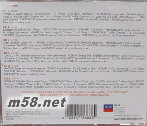 101 VIOLIN 101小提琴殿堂大師精選套裝 101古典系列6CD套裝 德版專輯背面圖片