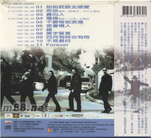 1、拍拍屁股去戀愛 2、收拾/電影[歡樂谷]中文主題曲 3、真心人 4、電梯/電影[女湯]主題曲 5、不要怪他浪蕩 6、夜會情人 7、錯 8、黑字誓言 9、四月有時也有到雨 10、不見最好 11、FOREVER