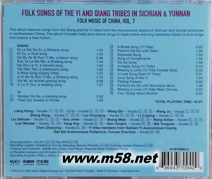 中國民歌集 (7) 四川 云南 彝族 羌族民歌 Folk Music of China, ol. 7 - Folk Songs of the Yi and Qiang Tribes in Sichuan and Yunnan(m58.net)