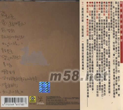 駱駝飛鳥魚(m58.net) 等9年難得齊豫 跨世紀的聲音 錄制3年97全新中文專輯 12首典藏特選1次收錄 此張專輯邀集目前音樂界一流工作者參與詞、曲等,如:郭子、齊秦、齊豫、李泰祥、許常德、李格弟(詩人夏宇)、吳俊霖(伍佰)、黃舒駿、陳偉.....等,近年僅見的堅強陣容,特別量[聲]訂作,將齊豫無人能及的獨特聲音結合完美盡致動人。 哭泣的駱駝 描述著一場宿命式的愛情觀,透過齊豫的完美線詮釋,絲絲入扣、浪漫絕美,似音、似弦、似情、是齊豫。 飛鳥與魚 齊豫—齊秦聯(lián)手創(chuàng)作,展現(xiàn)風格特異的齊式浪漫,鳥和魚的凄美戀曲,一段無法結局的思念情愫,隨著歌聲完全傾瀉釋放,悸動不己。 女人與小孩 簡單的吉他撥弦配和齊豫輕呤淺唱,溫馨動人,并另特別收錄與李潔(女兒)合唱版本,繞富趣味。 覺 意映寫給林覺民一封信,中國近代史上最傷動感人的愛情故事。 有,沒有 世界音樂的曲風,跟著齊豫無國界的歌聲,遨游宇際。 嘆息瓶—既然你問起 是李泰祥—齊豫帶給廣大聽眾另二首經曲音樂…………十二首經典好歌,完整收錄,一張值得珍藏經典專輯。