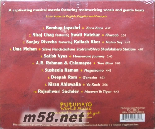 知名世界音樂品牌Putumayo,不愧為世界音樂的寶藏之地,這回全新策畫的《Putumayo Presents India》更趕搭上近期話題電影「貧民百萬富翁」順風車,在全球正掀起一陣印度熱的當下,透過音樂打造出這亞洲大國的民族意象。輯中首曲,由Bombay Jayashri的〈Zara Zara〉一曲以南印度方言Carnatic唱出濃厚的傳統風情,接著,音樂創作人Niraj Chag混合東西方音樂元素並找來歌手Swati Natekar一同交出的〈Khwaab〉,則開啟了印度絕美抒情歌謠的篇章。而靠著「貧民百萬富翁」一舉拿下2009奧斯卡獎最佳配樂與最佳電影歌曲兩座小金人,有印度莫札特之稱的A.R. Rahman亦奉上07年為寶萊塢電影所寫的作品〈Tere Bina〉,兼具流行與傳統的曲調,十足容易入耳。到了末曲則請到身兼歌手/演員/舞者三重身份的Rajeshwari Sachdev獻上另一寶萊塢作品〈Maavan Te Tiyan〉,交織著傳統器樂與現代電子的編曲架構,體現了印度音樂的現代化與多變性,同時也具體而微的呈現起當今印度音樂的脈絡。