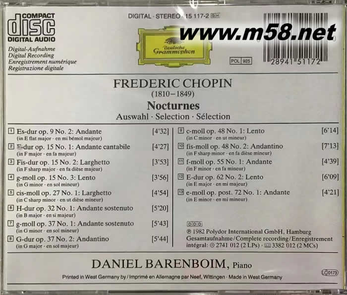 01 - Daniel Barenboim - In E Flat Major Op. 9 No. 2- Andante 02 - Daniel Barenboim - In F Major Op. 15 No. 1- Andante Cantabile 03 - Daniel Barenboim - In F Sharp Major Op.15 No. 2- Larghetto 04 - Daniel Barenboim - In G Minor Op. 15 No.3- Lento 05 - Daniel Barenboim - In C Sharp Minor Op. 27 No. 1- Larghetto 06 - Daniel Barenboim - In B Major Op. 32 No. 1- Andante Sostenuto 07 - Daniel Barenboim - In G Minor Op. 37 No. 1- Andante Sostenuto 08 - Daniel Barenboim - In G Major Op. 37 No. 2- Andantino 09 - Daniel Barenboim - In C Minor Op. 48 No. 1- Lento 10 - Daniel Barenboim - In F Shapr Minor Op. 48 No. 2- Andantino 11 - Daniel Barenboim - In F Minor Op. 55 No. 1- Andante 12 - Daniel Barenboim - In E Major Op. 62 No. 2- Lento 13 - Daniel Barenboim - In E Minor Op. Post. 72 No. 1- Andante