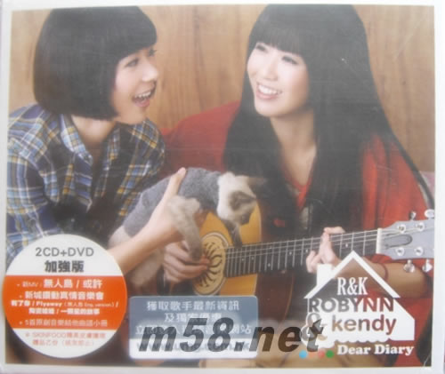 Dear Diary (2CD + DVD) 加強版(m58.net) 由Robynn Yip和Kendy Suen組成的二重唱組合Robynn & Kendy,2012年憑首張同名大碟在各大樂壇頒獎禮中獲頒多個新人組合獎,Robynn & Kendy以全新唱作和新編經典歌曲帶來2013年最新專輯《Dear Diary》。新曲「Say Goodbye」由Robynn作曲,曰云填詞,Robynn & Kendy以歌聲發出正能量,放下牽掛來作改變。二人同時翻唱了五首經典作包括陳百強「有了你」、張國榮「小明星」、Beyond「海闊天空」和梅艷芳「似水流年」。
