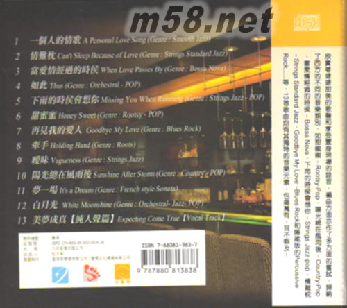 當(dāng)愛(ài)情經(jīng)過(guò)的時(shí)候[知音版](m58.net) 欣賞著瑭瑭甜美的歌聲和享受置身現(xiàn)場(chǎng)的錄音,編曲方面亦作了多方面的嘗試,歸納了西方的不同的音樂(lè)類(lèi)別,如甜蜜蜜-Rootsy-Pop、陽(yáng)光總在風(fēng)雨后-Country-Pop、當(dāng)愛(ài)情經(jīng)過(guò)的時(shí)候-Bossa Nova、下雨的時(shí)候會(huì)想你-Strings Jazz-POP、情難枕-Strings Standard Jazz、Goodbye My Love-Blues Rock和隱藏版的Percussive Rock......等,13首歌曲均有其獨(dú)特的音樂(lè)元素,包羅萬(wàn)有,耳不暇及!
