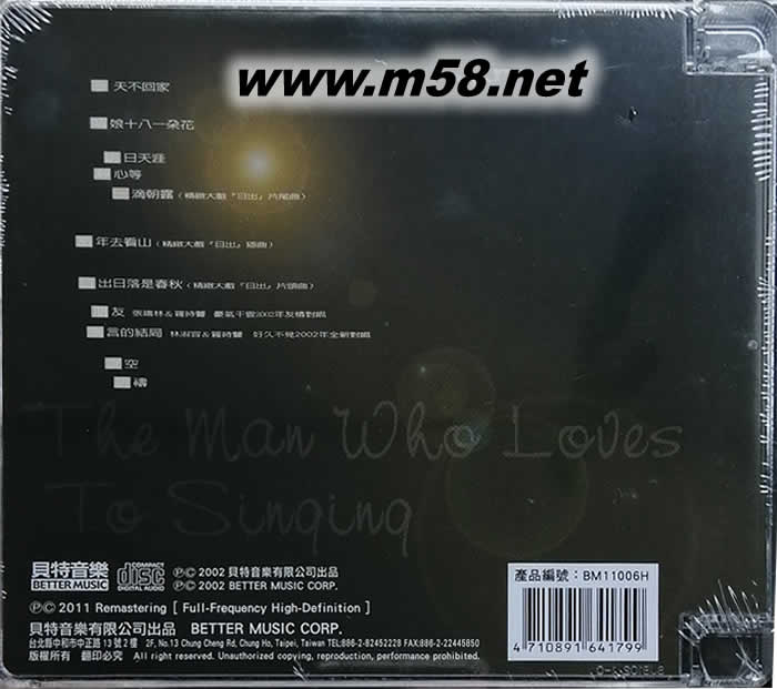 唱歌的人(m58.net) 全新爵士演釋專輯 專業的評價:-------劉漢盛(《音響論壇》總編) ”老實說,我從來沒買過羅時豐的CD,我對他歌喉歌藝的認識僅止于電視上所看到、聽到者。可是,這次我卻要向讀者推薦羅時豐這些《唱歌的人》。要推薦一樣東西一定是有理由的,而且我的理由十分充分。 第一、封面這張照片的攝影、印刷都很精彩,光影的層次與神情的捕捉絕對是經典之作。 第二、這張CD的錄音精彩,每一首錄音都有其杰出之處。 第三、這張CD制作態度認真。羅時豐的嗓音寬厚略帶磁性,勝過進下一般流行歌手,你可以好好泡一杯茶或磨一杯咖啡,舒服的坐在椅子上享受羅時豐情感百分百的演唱。 “唱的人情感到哪,聽的人感動就到哪。”這是CD封面上的文字。的確。