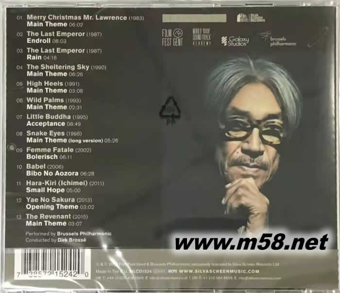 這幾部電影的配樂都非常動(dòng)聽,更棒的是這張CD是由布魯塞爾愛樂所演奏、Dirk Brosse指揮。可不要以為Dirk Brosse是無名小卒,他是作曲家,也是指揮家,作品超過200部,包括室內(nèi)樂、協(xié)奏曲、交響樂、舞臺(tái)音樂、電影音樂等等。為何會(huì)有這張電影配樂呢?原來Dirk Brosse與布魯塞爾愛樂每年都會(huì)在比利時(shí)Gent電影音樂節(jié)頒獎(jiǎng)典禮上現(xiàn)場(chǎng)演出獲獎(jiǎng)的電影配樂,這個(gè)獎(jiǎng)名為World Soundtrack Award。每年這個(gè)電影節(jié)都會(huì)在頒獎(jiǎng)典禮舉行前,先行錄制該年獲獎(jiǎng)的電影音樂作曲家作品,這張CD就是在這樣的情況下錄制的。