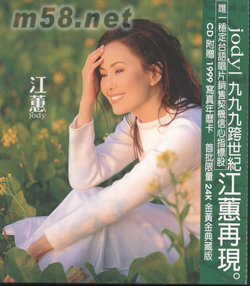 價格為估,以實到貨為準! 江蕙JODY首批限量24K金黃金典藏版(m58.net) 唯一穩定臺語唱片銷售契機信心指標股 CD附贈1999寫真年壢卡,首批限量24K金黃金典藏版 半醉半清醒/清醒版:金曲獎最佳作詞人李子恒老師特別量身定做跨世紀聯系手巨獻,氣勢磅礴 夢中中之歌:告別悲情,新臺灣人短美展現,新春恰恰舞曲曲,熱力四射,勇往直前 月娘啊,聽我講:引爆1999,轟動全臺卡拉OK必備男女對唱曲,全省唱透透 熟識愛:曾淑勤式臺灣新民謠VS臺灣至尊天后優質唱腔,火花立現引領風騷。 怎樣會堪:民視8點檔[春天父母心]片尾曲,一步一個腳印,一曲扣人心深刻登場 闊闊的天:獨立新時代,好女人愛自己,做自己。闊闊的天自由飛 罵春風:柔美感人迎春新曲,娓娓細訴,動人心弦。 難過情關:中視8點檔,[海海人生]片尾曲,佳評如潮,勢如破竹 瘋女人:新寫實主義,再創臺語歌曲新視野,值得推薦 落雨聲:中視8點檔[春天父母心]片頭曲,有頭有尾,掌聲不斷。 半醉半清醒/宿醉版:好歌不寂寞,一次不夠再編一版,多了一遍價格不變 月娘啊聽我講:對唱練習版,先聽先贏。