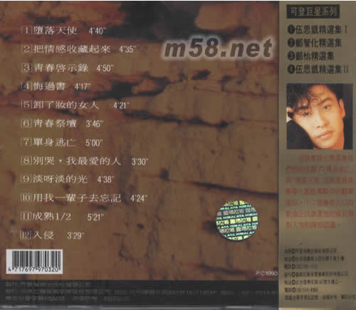 1、墮落天使 2、把情感收藏起來 3、青春啟示錄 4、悔過書 5、卸了裝的女人 6、青春祭壇 7、單身逃亡 8、別哭,我最愛的人 9、淡呀淡的光 10、用我一輩子去忘記 11、成熟 12、入侵