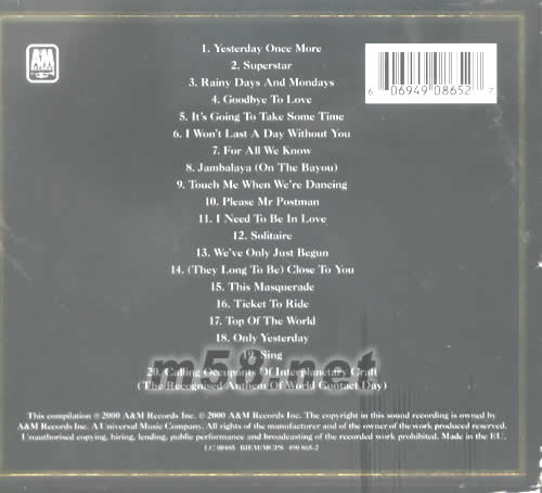 卡朋特 珍藏精選集 CD(美版)20th Century Masters: Millennium Collection