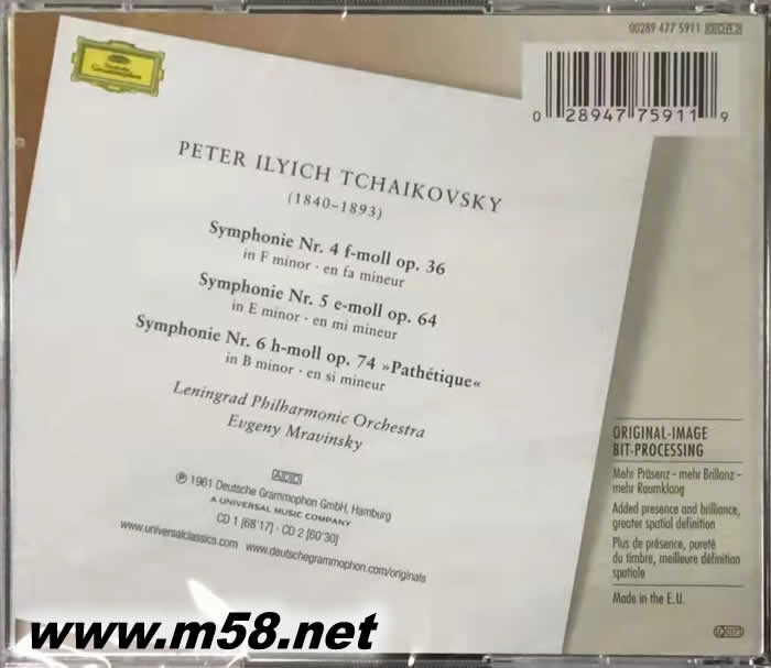 柴可夫斯基:4,5交響曲 雙CD TCHAIKOVSKY SYMPHONIES NOS.4 5&6 大禾花版 雙CD(m58.net)