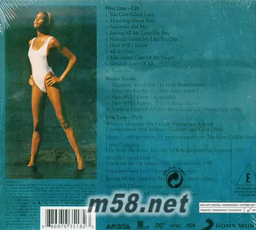 1. You Give Good Love 【1985年告示牌排行榜季軍單曲】 2. Thinking About You 3. Someone For Me 4. Saving All My Love For You 【1985年告示牌排行榜冠軍單曲】 5. Nobody Loves Me Like You Do 6. How Will I Know 【1986年告示牌排行榜冠軍單曲】 7. All At Once 8. Take Good Care Of My Heart 9. Greatest Love Of All 【1986年告示牌排行榜冠軍單曲】 10. Hold Me (Duet With Teddy Pendergrass) 11. BONUS TRACKS Thinking About You (Remix by Bruce Forest) 12. Someone For Me (Remix by Alan Coulthard) 13. How Will I Know (A cappella) 14. How Will I Know (Remix by Jellybean) 15. Greatest Love Of All (Live) DVD Conversations With Whitney Houston and Clive Davis "Home" – The Merv Griffin Show, 1983 "I Am Changing"- The Arista Records 10th Anniversary Celebration, 1985 "You Give Good Love"- The 1st Annual Soul Train Awards, 1987 "You Give Good Love"- MV "Saving All My Love"- MV "How Will I Know"- MV "Greatest Love Of All"- MV